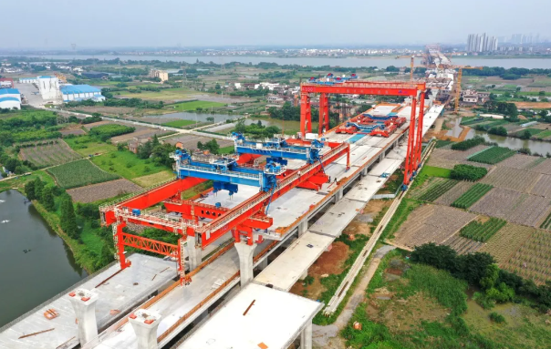 在國內(nèi)首次實現(xiàn)公鐵合建段上層雙幅公路梁的一孔兩榀式同架,創(chuàng)新解決預制梁非對稱結(jié)構(gòu)帶來的極限偏載難題,填補了行業(yè)技術(shù)空白。