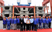 今天,在浙江舟山,中鐵大橋局舟山港主通道項目部收到了上海大世界基尼斯總部頒發(fā)的證書,由天業(yè)通聯(lián)為大橋局提供的TLMEL1200t輪胎式搬運機成功入選了大世界基尼斯之最。TLMEL1200t型輪胎式搬運機由天業(yè)通聯(lián)為中鐵大橋局寧波舟山港跨海大橋項目量身打造。能實...